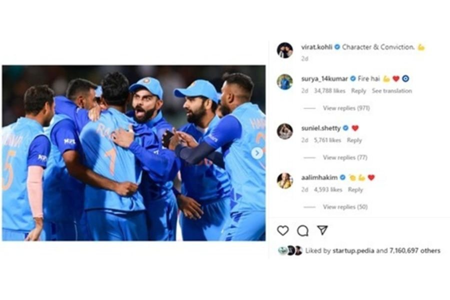 New Delhi (India), November 11– CheckBrand worked upon gauging the digital impressions for the “Men In Blue”, looked at more than 50 million internet impressions for the analysis. On a number of online sites, including Twitter, Facebook, Google search, Wikipedia, YouTube, Instagram, and Google Trends, among others, the well-known cricketer “Virat Kohli” is one of the most influential and renowned personality. The cricketer has received more than 6.7Million engagement across the web.