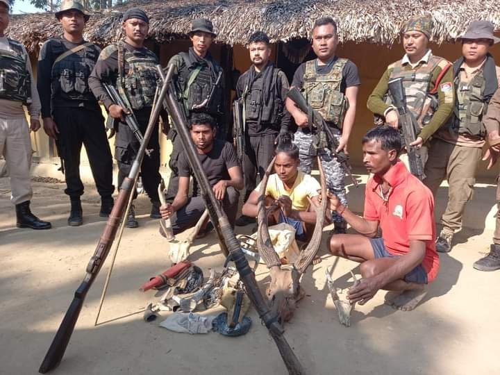 GUWAHATI, JAN 12:  JAN 12: In a crackdown against wildlife poachers,  the Tinsukia police on Wednesday evening  arrested three persons involved in poaching of wild animals from Pengeri area of Tinsukia district in the Assam-Arunachal border.
