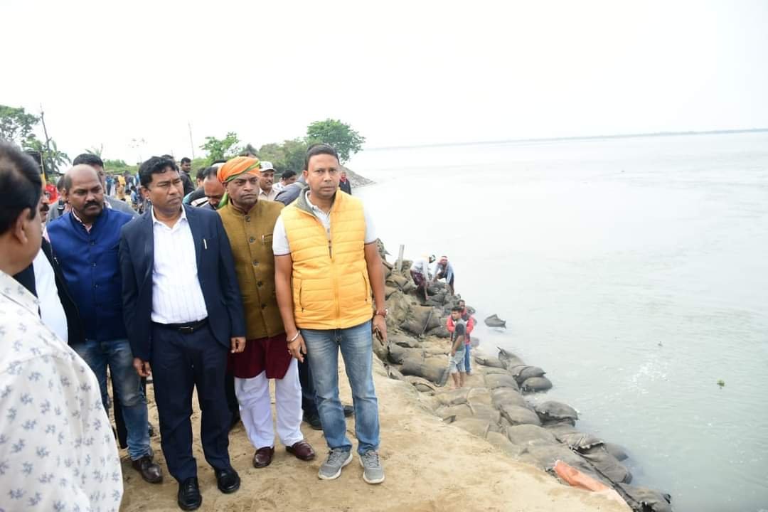 Talking to media persons, Rameswar Teli said, “The erosion has been started in the area for last 15 days but it heavily affected the area on Saturday. A total of 220 meters of land were washed away into the river due to massive erosion. Three types of geo-bags were used to control the massive erosion,”.