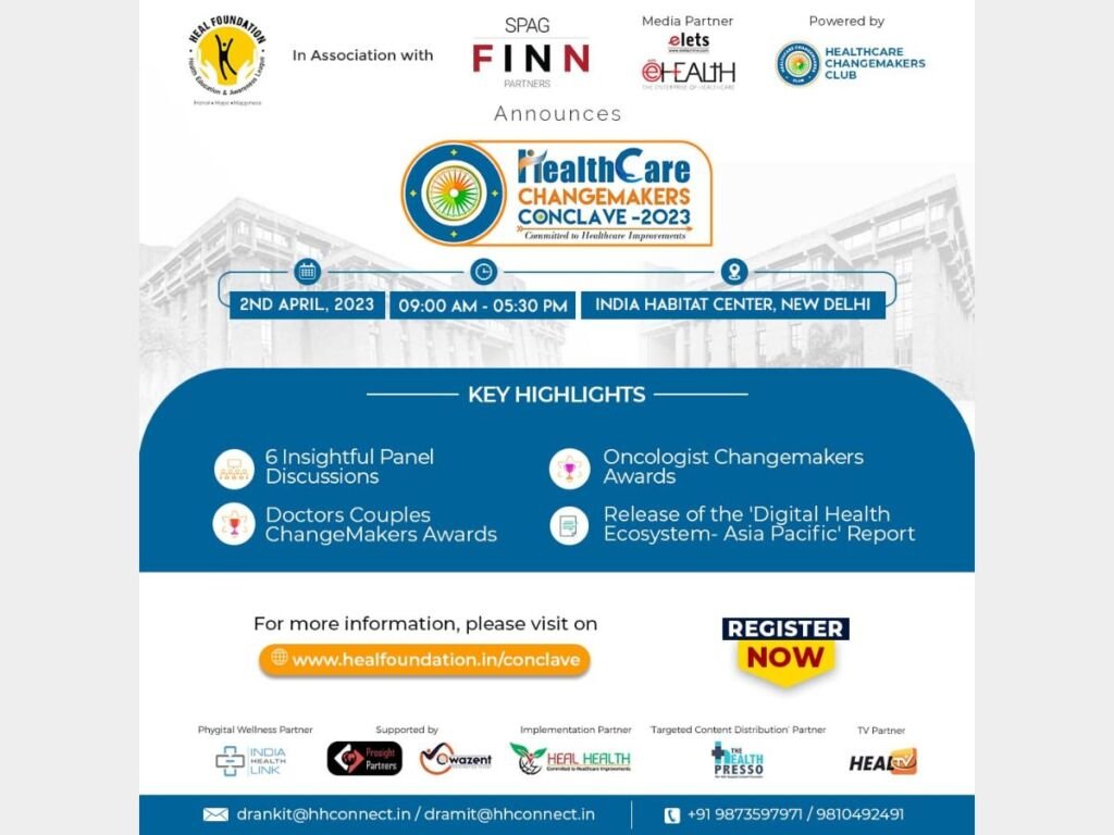 New Delhi, March 15: On the completion of 75 years of independence, we have just celebrated Azadi Ka Amrit Mahotsav, but the next 25 years will be the ‘Amrit Kaal’ (the era of elixir) for India’s development as voiced by PM Modi. In the mission of making India the ‘Health Capital’ of the world by 2047 while celebrating 100 years of India’s independence, the ‘Healthcare Changemakers’ need to contribute to the hilt with their respective expertise. To congregate the Healthcare Changemakers to accomplish the said mission, HEAL Foundation – ‘Healthcare Changemakers Club’ is all set to organise the 1st Healthcare Changemakers Conclave-2023 on April 2, 2023, in association with SPAG – A FINN Partners Company.