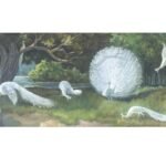 The muster of ‘white peacocks’ that signify spirituality, inner light, rebirth and even nirvana is not only an ode to the peacock but also to a rather under-appreciated stalwart of Indian art -F M Soofi – who excelled in bird, flaura& fauna and animal compositions apart from inlay work. An alumnus of the art schools at Mysuru and Mumbai, Soofi was a recipient of the Lalitkala Academy award in 1982 and the state Rajyotsava award in 1984. This oil on board, with a width of four feet is a typical composition by this master artist from Karnataka whose paintings are hard to come by and that too at an auction.