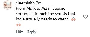 One more netizen commented, “From Mulk to Assi, Taapsee continues to pick the scripts that India actually needs to watch (sic).” Check out the comments below…