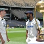 #WATCH | Indian Skipper Jasprit Bumrah and Australian Skipper Pat Cummins pose with the Border-Gavaskar Trophy, for a photograph in Perth, Australia. India’s Test Vice-Captain Jasprit Bumrah is stepping in for Rohit Sharma in his absence.