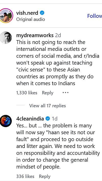 Another commenter highlighted the double standards often seen online, where India is criticised for cleanliness issues while global contributors to ocean waste escape scrutiny.