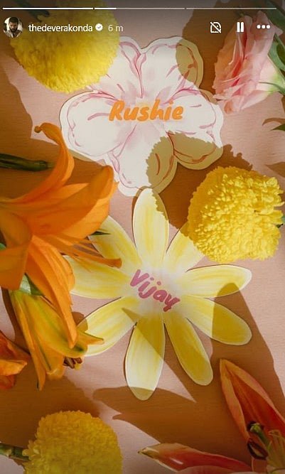 Adding a personal touch to the traditional ceremony, Vijay also shared a close-up of customised floral name placards. One flower-shaped card read “Rushie”, Rashmika’s nickname, while the other simply read “Vijay.” The placards were placed among fresh lilies, roses and marigolds.